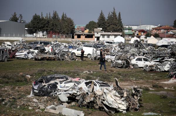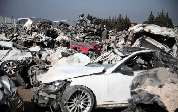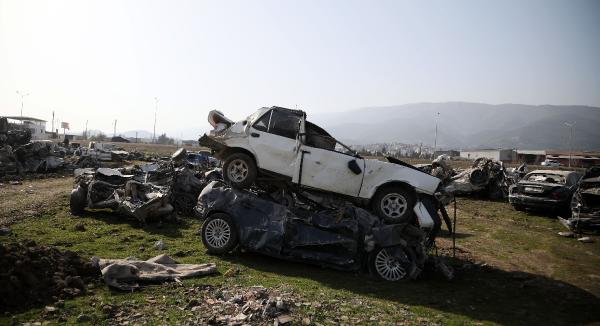 'Araç mezarlığı'na dönüşen alanlarda büyük hasar almış yüzlerce araç bulunuyor. Üzerlerinde enkazdaki beton parçalarından kalıntıların da bulunduğu araçların birçoğunun ağır hasarlı olduğu görüldü.