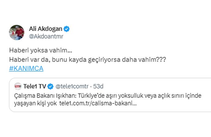 TÜRK-İŞ’in verilerine göre 4 kişilik aile için açlık sınırı 13 bin 648 lira, yoksulluk sınırı 44 bin 573 lira iken Çalışma Bakanı Vedat Işıkhan’a göre Türkiye’de aşırı yoksulluk veya açlık sınırı içinde yaşayan kişi yok…