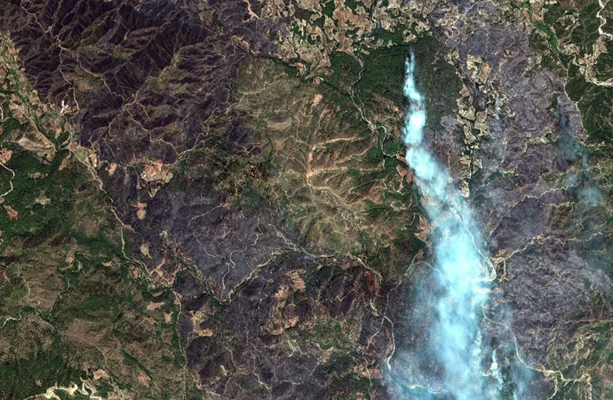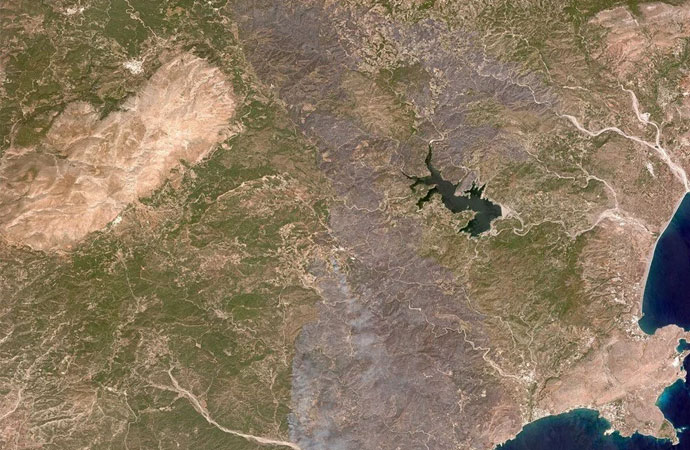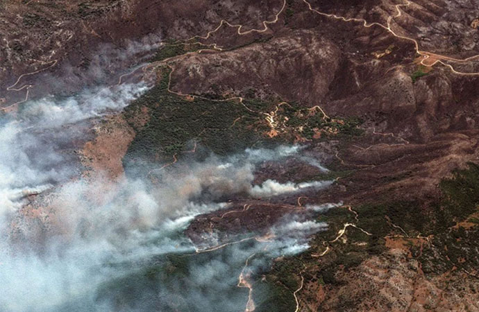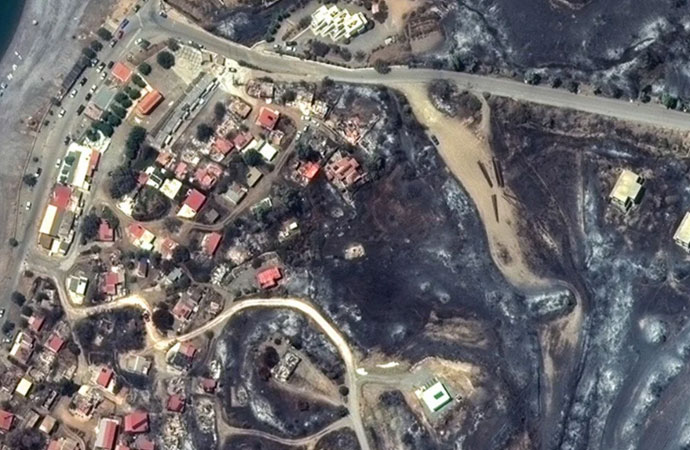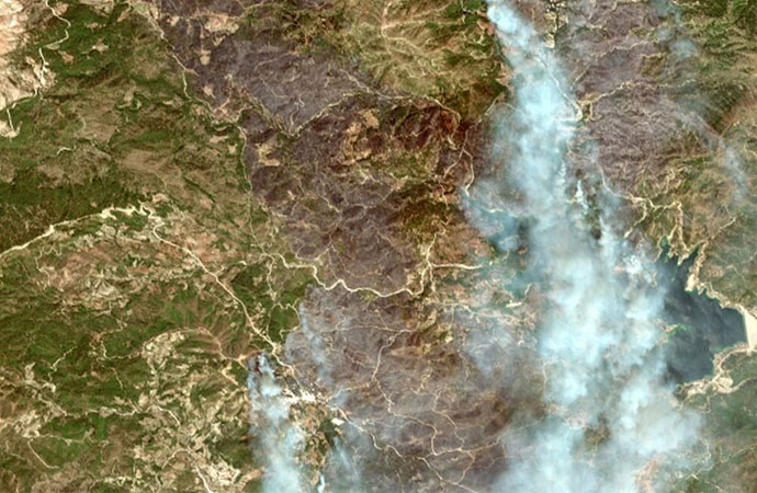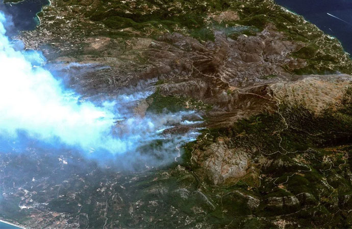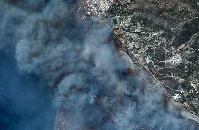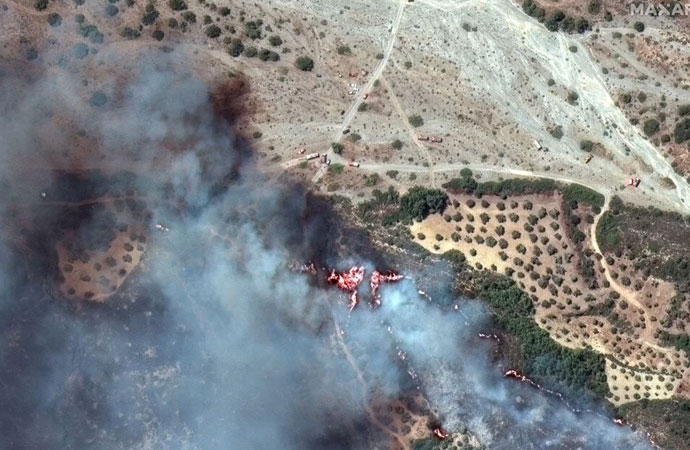 ABD’li uydu şirketi Mxar Technologies, Yunan adalarındaki yangınların uydu görüntülerini paylaştı.