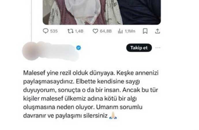 Bir sosyal medya kullanıcısı, "Maalesef rezil olduk dünyaya. Keşke annenizi paylaşmasaydınız" yorumunu yaparak başörtüsünden duyduğu rahatsızlığı dile getirdi. Birçok kullanıcı da 'Rezil olduk, sil şunu', 'Avrupa'ya küçük düştük' gibi utandıran yorumlarda bulundu.