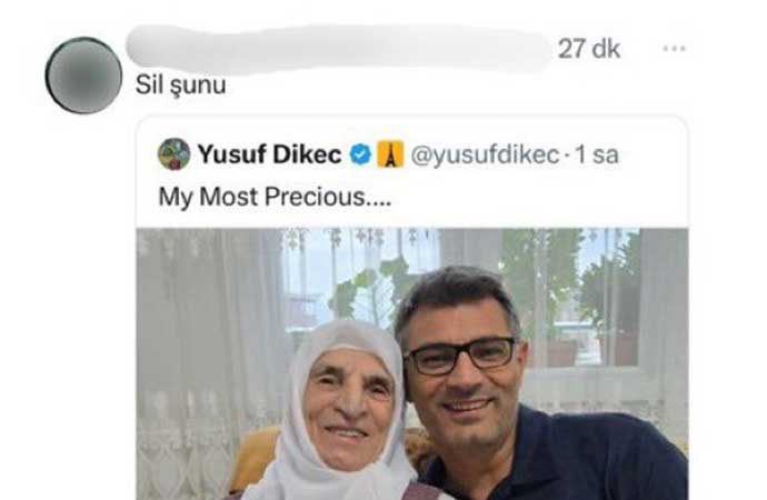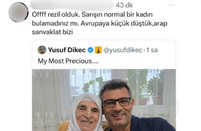 Yusuf Dikeç sosyal medya hesabından annesiyle çekilmiş bir fotoğraf karesini, Türkçe'de "En değerlim" anlamına gelen "My Most Precious" notuyla paylaştı. Dikeç'in paylaştığı fotoğrafa yapılan çirkin yorumlar ise tepki çekti.