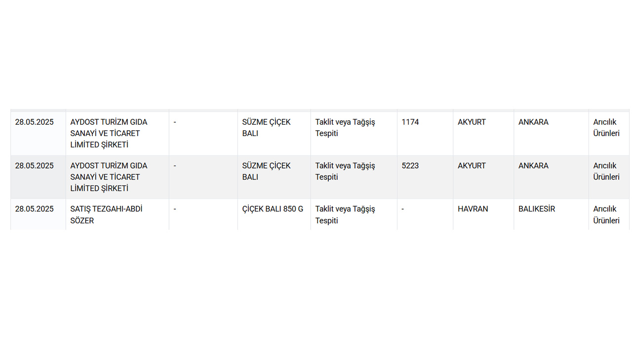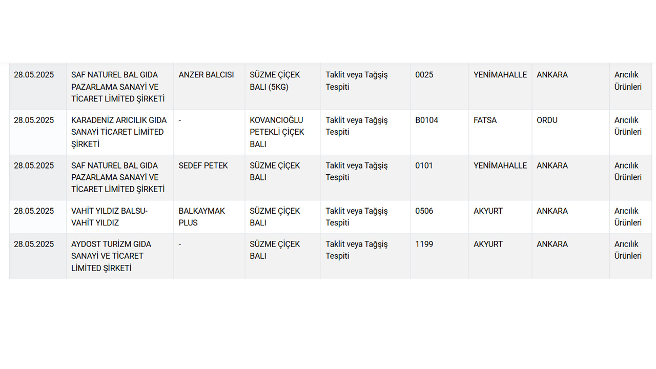 Söz konusu listeye 28 Mayıs Çarşamba günü eklenen bal markaları şaşkınlığa neden oldu.