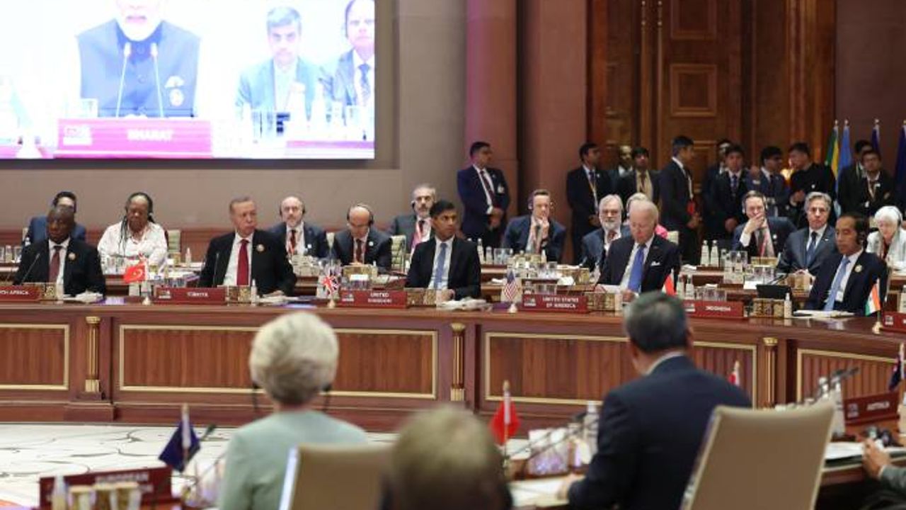 Hindistan Başbakanı Narendra Modi, Bharat Mandapam Uluslararası Fuar ve Kongre Merkezi'ndeki törende zirveye katılan liderleri tek tek karşılayarak fotoğraf çektirdi. AKP'li Cumhurbaşkanı Recep Tayyip Erdoğan'ın da aralarında bulunduğu liderler tören kapsamında "Liderler Alanı"nda bir araya geldi. Törenin ardından liderler zirve oturumlarına katılmak üzere kongre merkezine giriş yaptı. AKP'li Cumhurbaşkanı Erdoğan da "Tek Dünya" temasıyla gerçekleştirilen günün ilk oturumunda yer aldı.
