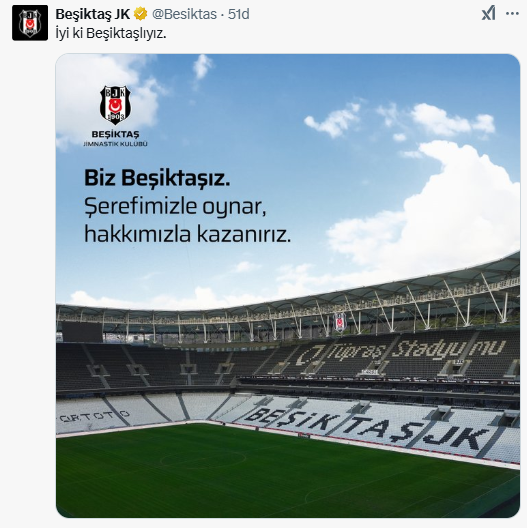 Siyah-beyazlı takım paylaşımında, "Biz Beşiktaşız. Şerefimizle oynar, hakkımızla kazanırız" ifadelerini kullandı.
