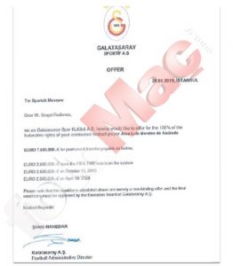 İşte Galatasaray'ın Spartak Moskova'ya gönderdiği teklif mektubu: