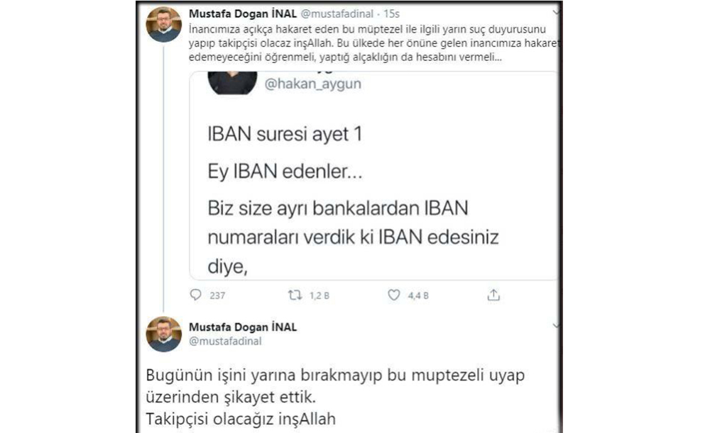 Gazeteci Hakan Aygün hakkında, Erdoğa'ın erdoğan'ın vatandaşlara 'IBAN' vererek bağış istemesine ilişkin attığı tweet nedeniyle duyurusunda bulunuldu.