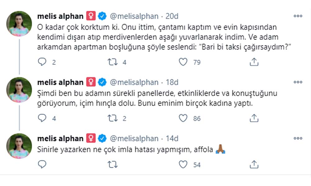 Gazeteci Melis Alphan da 22 yaşında yaşadığı tacizi açıkladı.