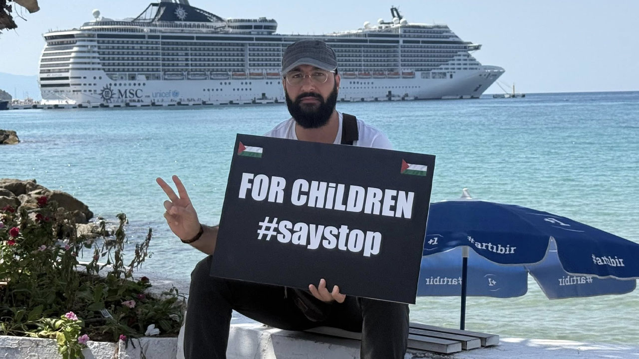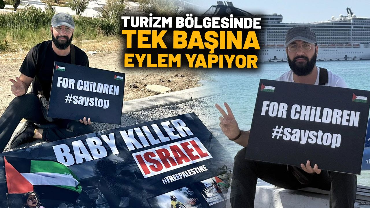 Gazeteci Veysel Karahan, İsrail'in Filistin’e yönelik insanlık dışı saldırılarını protesto etmek için Ege Bölgesi’ndeki turizm noktalarında sessiz oturma eylemine başladı.