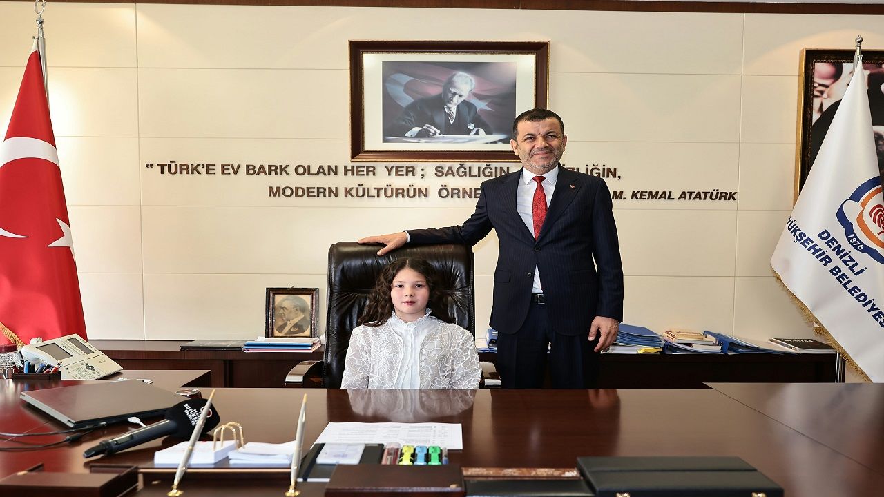 Başkanlık koltuğunu Fatih İlköğretim Okulu öğrencileri Nimet Asya Sarıoğlu, Zeynep Asya Sarıoğlu, Denizli Görme Engelliler İlkokulu öğrencileri Belinay Karabulut, Taci Efe Erdoğan, Ali Baysal Ortaokulu öğrencisi Zeynep Kayan, Milli Eğitim Koruma Derneği İlkokulu öğrencisi Nisanur Oymak ve Katip Çelebi İlkokulu Anasınıfı öğrencisi Murat Saim Sağdaş heyecanla devraldı. Ailelerinin ve öğretmenlerinin de eşlik ettiği çocuklar hep birlikte Başkan Çavuşoğlu’nun makamına oturarak 23 Nisan sevincini yaşadı.