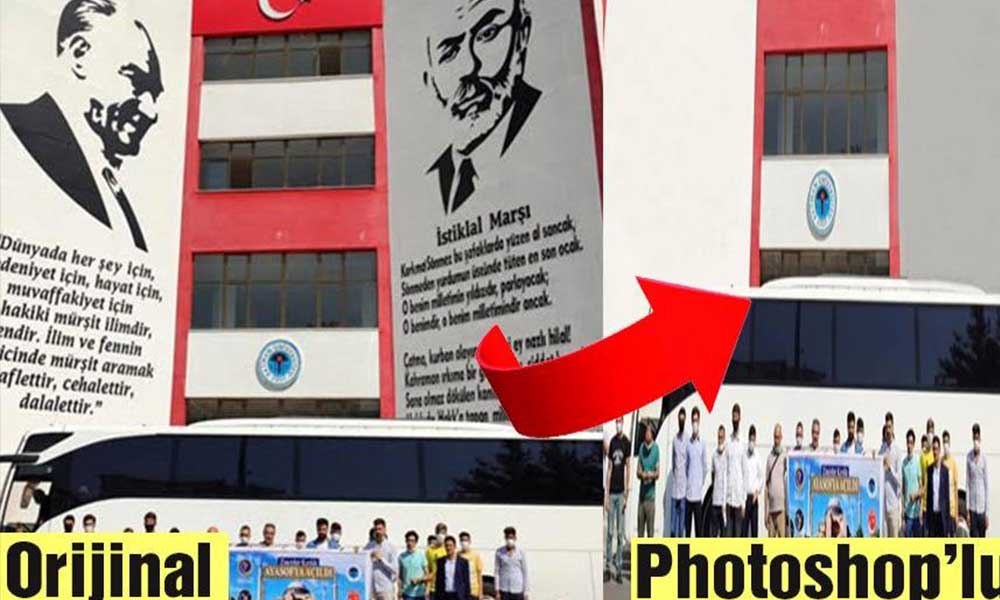 Uğurlama törenini takip eden yerel gazeteciler, bu fotoğrafları olduğu gibi kullandı. Ancak Birlik Vakfı Batman Şubesi yöneticileri, fotoğraflarda Atatürk ve Mehmet Akif Ersoy'un resimlerinin bulunmasını hazmedemedi. Vakıf, Twitter, Instagram ve Facebook gibi sosyal medya hesaplarından paylaştığı fotoğraflardaki Atatürk ve Mehmet Akif Ersoy’un resim ve sözlerini photoshop’la sildi.