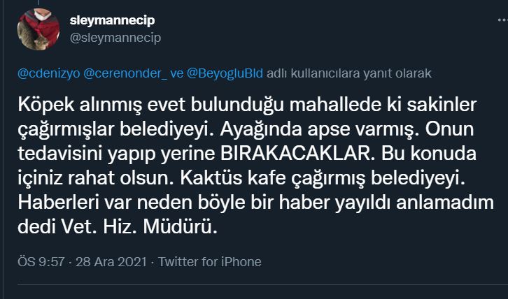 Oyuncu Gonca Vuslateri'nin de kendisine ait sosyal medya hesabından paylaştığı 'Süleyman' isimli köpeğin akıbeti belli oldu. Bir süredir AKP'li belediyelerin sokak hayvanlarını toplayıp barınaklara götürmesi endişşeleri artırmıştı. Fakat bir sosyal medya kullanıcısının paylaşımı yüreklere su serpti. Paylaşımda "Köpek alınmış evet bulunduğu mahallede ki sakinler çağırmışlar belediyeyi. Ayağında apse varmış. Onun tedavisini yapıp yerine BIRAKACAKLAR. Bu konuda içiniz rahat olsun. Kaktüs kafe çağırmış belediyeyi. Haberleri var neden böyle bir haber yayıldı anlamadım dedi Vet. Hiz. Müdürü." ifadeleri kullanıldı. https://tele1.com.tr/kadinlarin-ifsasi-devam-ediyor-gonca-vuslateri-tacizi-anlatti-520424/ İşte o paylaşımlar: