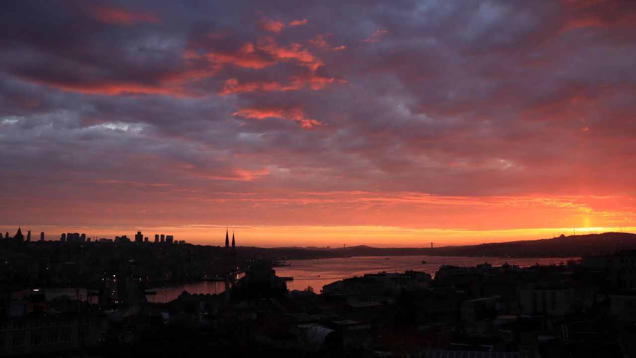 İstanbul'da gün doğumu gökyüzünü kızıla boyadı