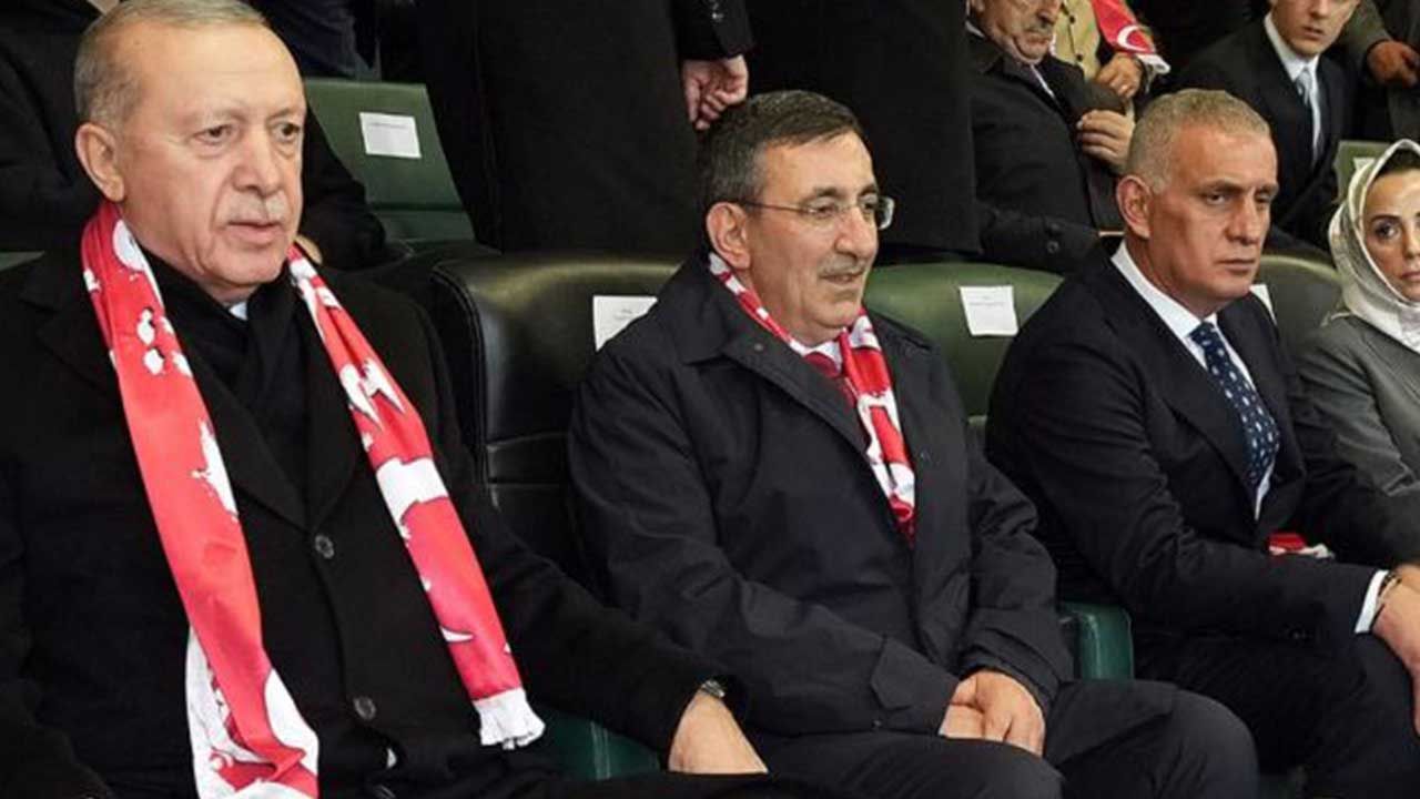 TFF Başkanı İbrahim Hacıosmanoğlu karşılaşmayı Erdoğan'ın iki yanındaki koltuktan izledi. Erdoğan'ın hemen yanında Cumhurbaşkanı Yardımcısı Cevdet Yılmaz yer aldı.