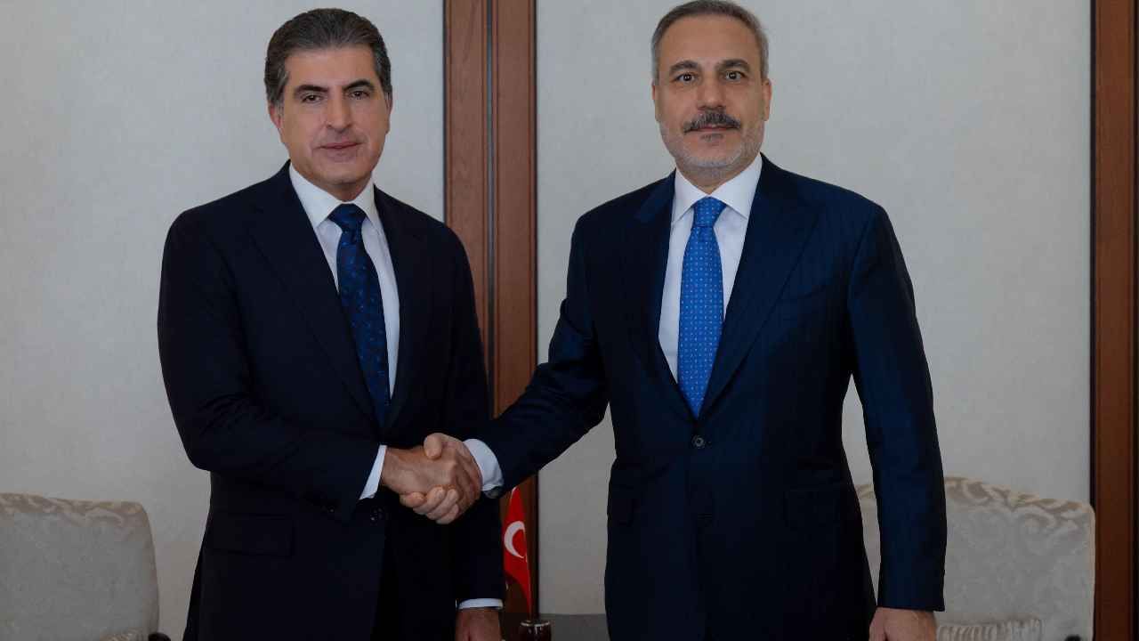 IKBY Başkanı Neçirvan Barzani, resmi ziyaretler için Ankara'ya geldi. Barzani, ilk olarak Dışişleri Bakanı Hakan Fidan ile görüştü. Bakanlıktan görüşmeye ilişkin fotoğraf paylaşıldı.