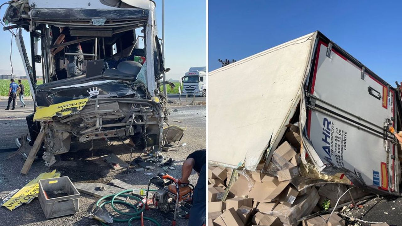 Mardin'in Kızıltepe ilçesi Sanayi Mahallesi Çevre Yolu kavşağında meydana geldi. Sürücüleri ve plakaları öğrenilemeyen özel halk otobüsü ile TIR çarpıştı. Kazada 10 kişi yaralandı. İhbar üzerine bölgeye sağlık, itfaiye ve polis ekipleri sevk edildi. Yaralılar, ambulanslarla kentteki hastanelere kaldırıldı.
