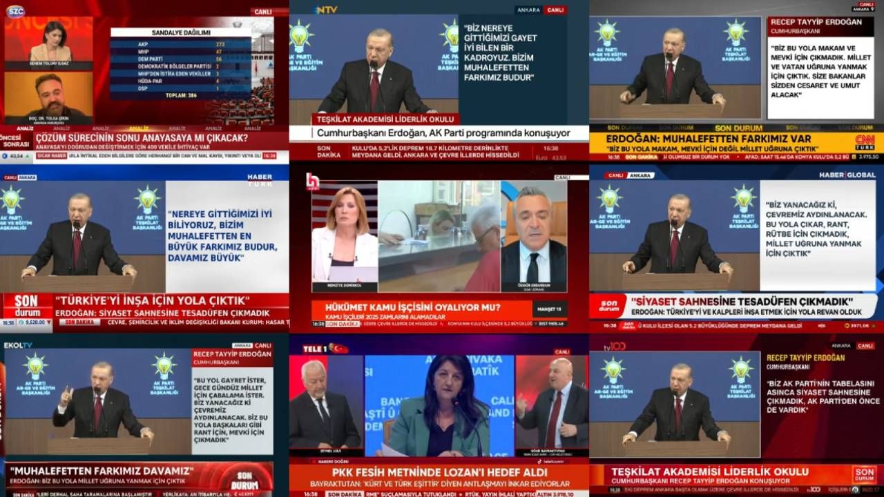 Gazeteci Berkant Gültekin, AKP'li Cumhurbaşkanı Recep Tayyip Erdoğan'ın konuşması sırasında dokuz televizyon kanalının yayına ait ekran görüntüsü paylaştı. Gültekin, sosyal medya hesabından yaptığı paylaşımına "RTÜK bugün kanallara yine ceza yağdırdı. Hangi kanallara ceza verdiğinin cevabı aşağıda." diye ekledi.