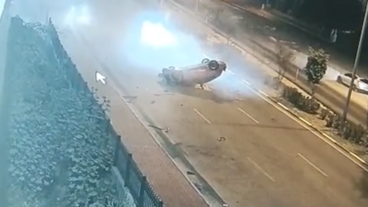 Kaza anı çevredeki bir güvenlik kamerasınca görüntülendi.