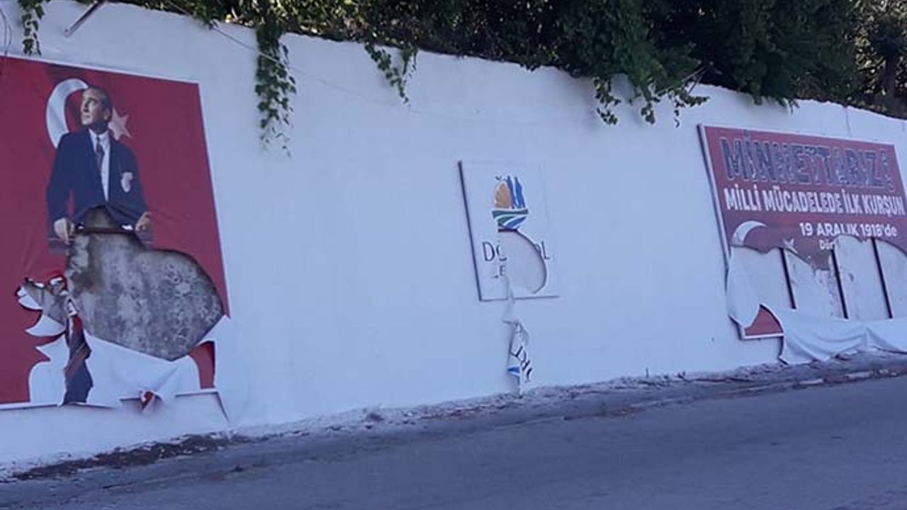 İHA'da yer alan habere göre, Hatay'da Mustafa Kemal Atatürk’ün fotoğrafı, Türk bayrağı ve "Milli Mücadelede ilk kurşun 1918’de Dörtyol Karakese’de atılmıştır" yazısı ile kahramanların resimlerinin yer aldığı duvar afişleri yırtılarak tahrip edildi.
