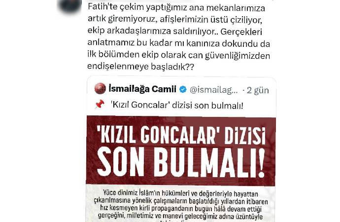 İlk bölümü yayınlandıktan sonra hedef haline gelen Kızıl Goncalar dizisinin set çalışanı, ekip arkadaşlarına saldırıldığını iddia etti.