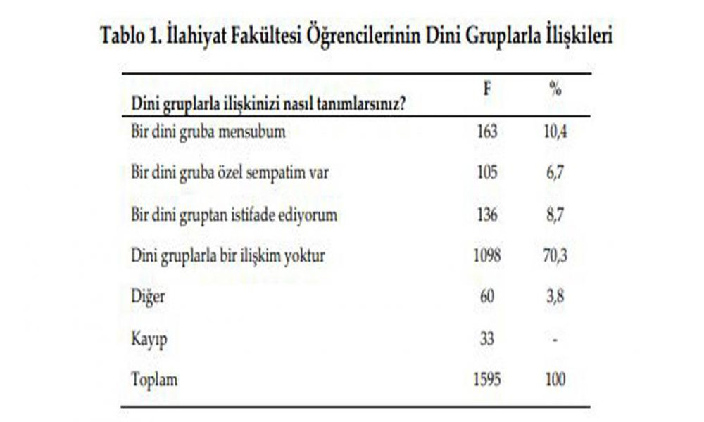 İlahiyat fakültesi öğrencileri arasında yapılan bir araştırma, öğrencilerin yüzde 70’inin dini gruplarla ilişkisi olmadığını ortaya koydu