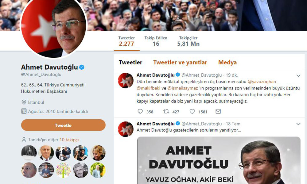 Davutoğlu'nun sosyal medya üzerinden yaptığı açıklamada şu ifadelere yer verdi: "Dün benimle mülakat gerçekleştiren üç basın mensubu @yavuzoghan @makifbeki ve @ismailsaymaz ‘ın programlarına son verilmesinden büyük üzüntü duydum. Kendileri sadece gazetecilik yaptılar. Bu kararın hiç bir izahı yok. Her kapıyı kapatsalar da biz yeni kapı açacak, susmayacağız.İşte o açıklama:
