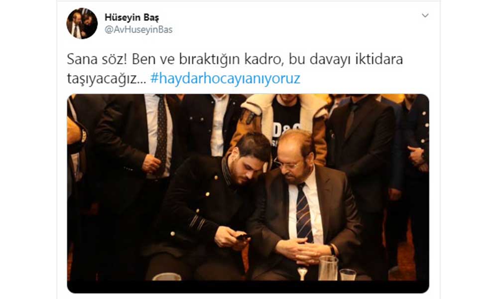 Babasının Milli Ekonomi Modeli'ni iktidara taşımak için bayrağı devraldığını belirten Hüseyin Baş, sosyal medya hesabından babası ve hareketin lideri Haydar Baş'ı andığı paylaşımda "Sana söz! Ben ve bıraktığın kadro, bu davayı iktidara taşıyacağız." dedi.