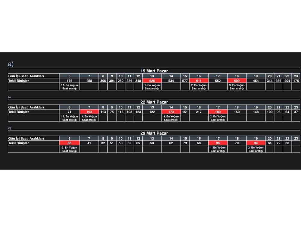 3- Önceki haftalarda pazar günleri, 06-07 saatleri, yoğun saat olarak en az yoğun 16. ve 17. sıradayken, 29 Mart tarihinde 3. sıraya yükseldiği görüldü.