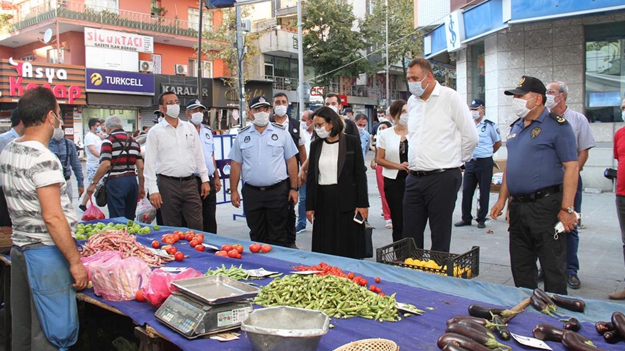 Çınar Caddesi’ndeki denetimlerini tamamlayan Kaymakam Dr. Hülya Kaya’nın son durağı ise caddenin bitimindeki semt pazarı oldu. Kaya, beraberindeki Kartal Belediyesi Zabıta Ekipleri ile birlikte pazar esnafına da bir dizi uyarılarda bulundu. Esnafın maskesini mutlaka takması gerektiği ve vatandaşların sebze-meyvelere dokunmadan alışveriş yapmaları gerektiği hatırlatılırken, genel olarak esnafın ve vatandaşların kurallara uyduğu gözlemlendi.