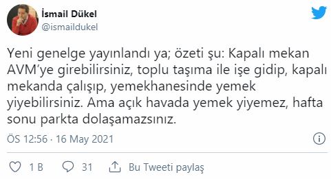 "Tam" kapanmanın son gününde İçişleri Bakanlığı tarafından yayımlanan "normalleşme" genelgesine sosyal medyada tepki yağdı. Bir yılı aşkın süredir kapalı olan esnaf göz ardı edilmekten şikayet ederken, yurttaşlar "Aşım nerede?" diye sordu.
