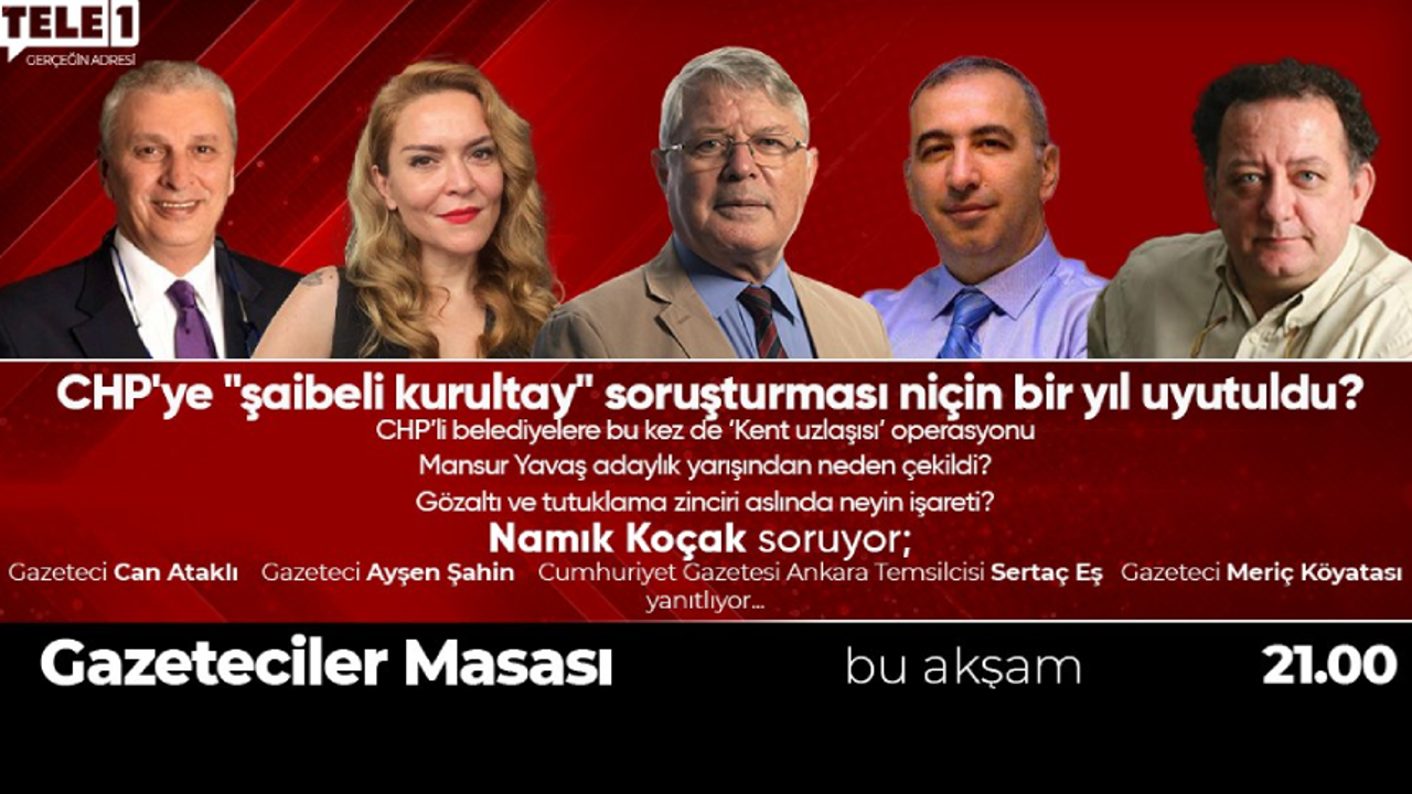 TELE1’de yayınlanan Namık Koçak’ın hazırlayıp sunduğu Gazeteciler Masası, bu akşam da önemli konu başlıklarıyla ekrana geliyor.