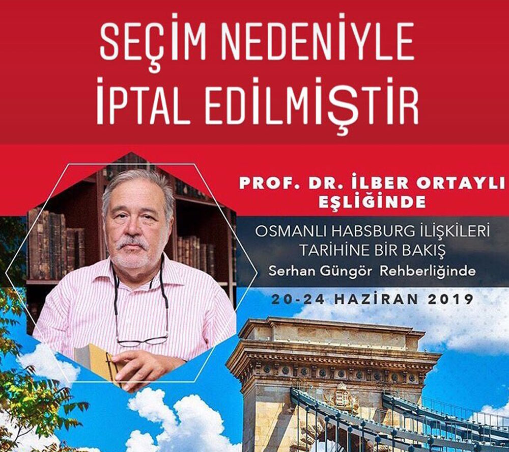 Kararını kişisel Twitter hesabından duyuran Ortaylı, etkinliğin olduğu görseli paylaşarak, "Seçim nedeniyle iptal edilmiştir" diye yazdı.Ortaylı'nın paylaşımı şöyle: