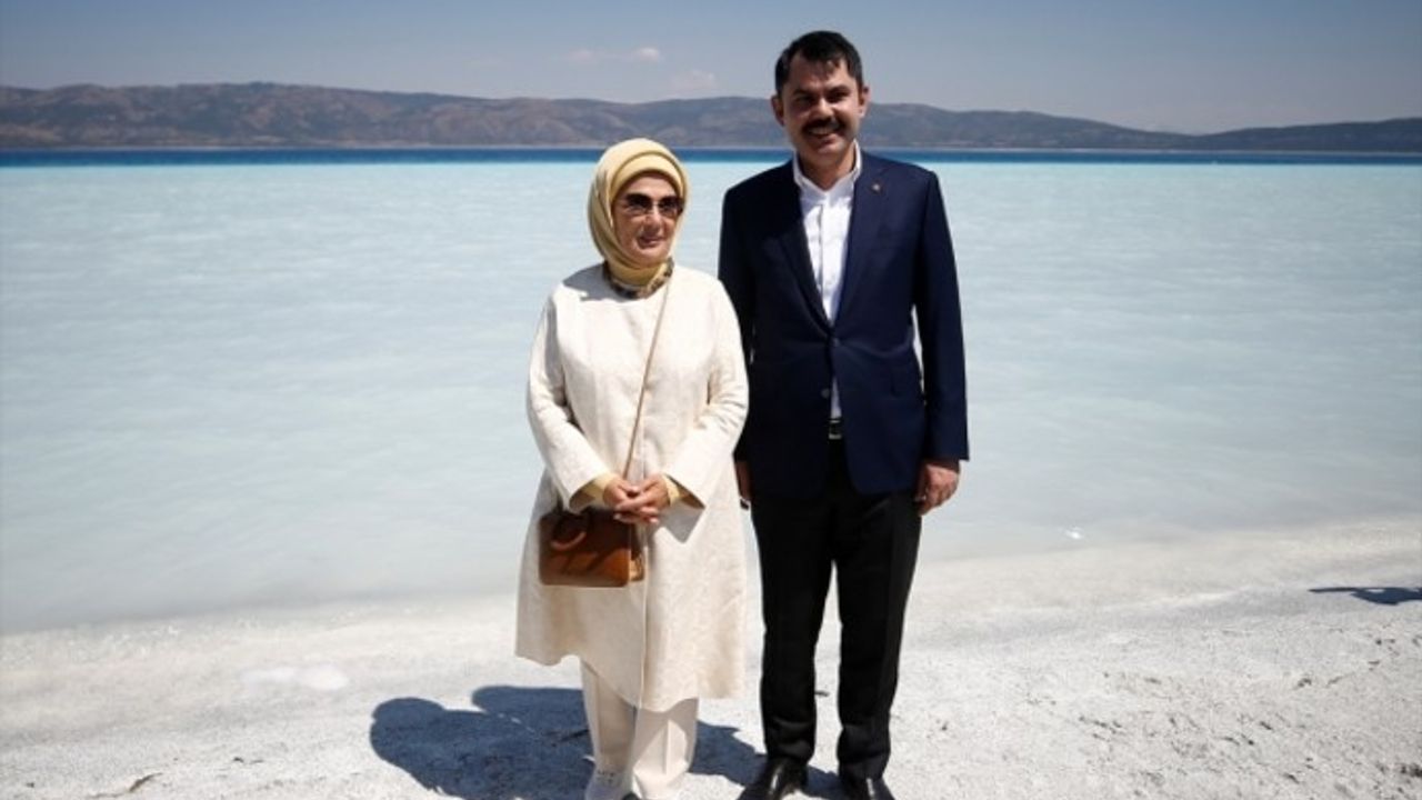 AKP'li Cumhurbaşkanı Erdoğan'ın eşi Emine Erdoğan, Çevre ve Şehircilik Bakanı Murat Kurum'un davetlisi olarak, inceleme yapmak üzere Burdur'un Yeşilova ilçesindeki Salda Gölü'ne geldi.