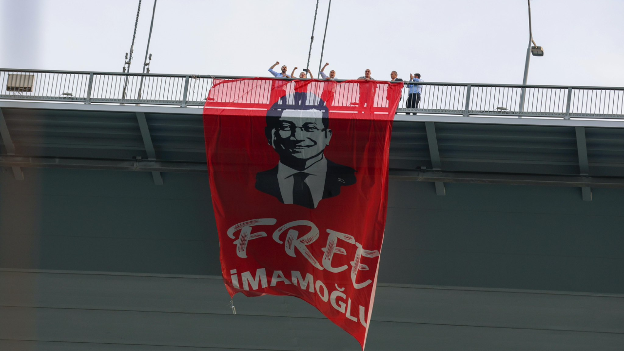 CHP'li vekiller, İBB Başkanı Ekrem İmamoğlu'nun görsellerinin savcılık tarafından yasaklanmasının ardından eski adı Boğaziçi Köprüsü olan 15 Temmuz Şehitler Köprüsü’ne “Free İmamoğlu (İmamoğlu'na özgürlük)" pankartı astı.