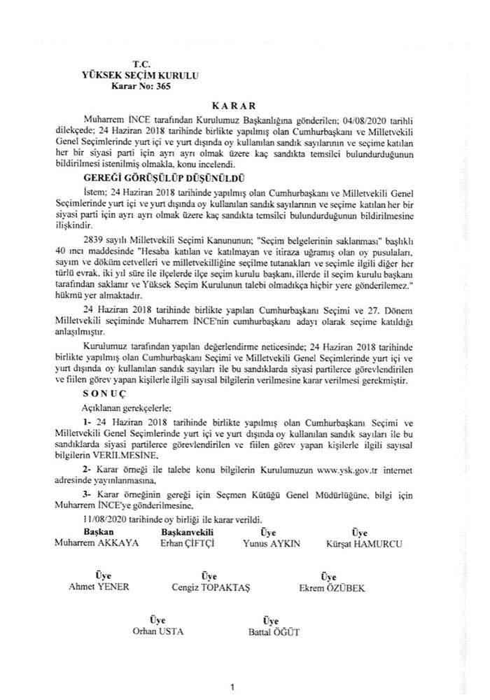 Muharrem İnce’nin açıklamaları sonrası gazeteci İsmail Saymaz’dan dikkat çeken bir paylaşım geldi. Saymaz, Twitter’da Muharrem İnce’nin YSK’ya yazdığı yazı için gelen cevabı paylaştı.Saymaz’ın yaptığı paylaşımda İnce’nin 2018 yılında yapılan Cumhurbaşkanlığı seçimiyle ilgili bilgileri YSK’dan 11 Ağustos 2020 tarihinde aldığı ortaya çıktı.İsmail Saymaz’ın Twitter hesabında paylaştığı belge şöyle:Yüksek Seçim Kurulu’nun Muharrem İnce’ye verdiği yazılı yanıt pic.twitter.com/Eky62mw5Yh