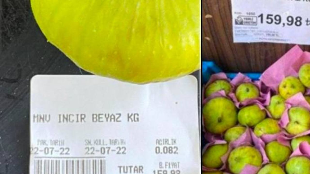AKP'li Cumhurbaşkanı Recep Tayyip Erdoğan'ın "yazın ucuzlar" dediği gıda fiyatlarının önü alınamıyor. Sosyal medyada paylaşılan bir görüntüde, ortalama 84 gramlık bir incirin 13 liraya denk geldiği görüldü.