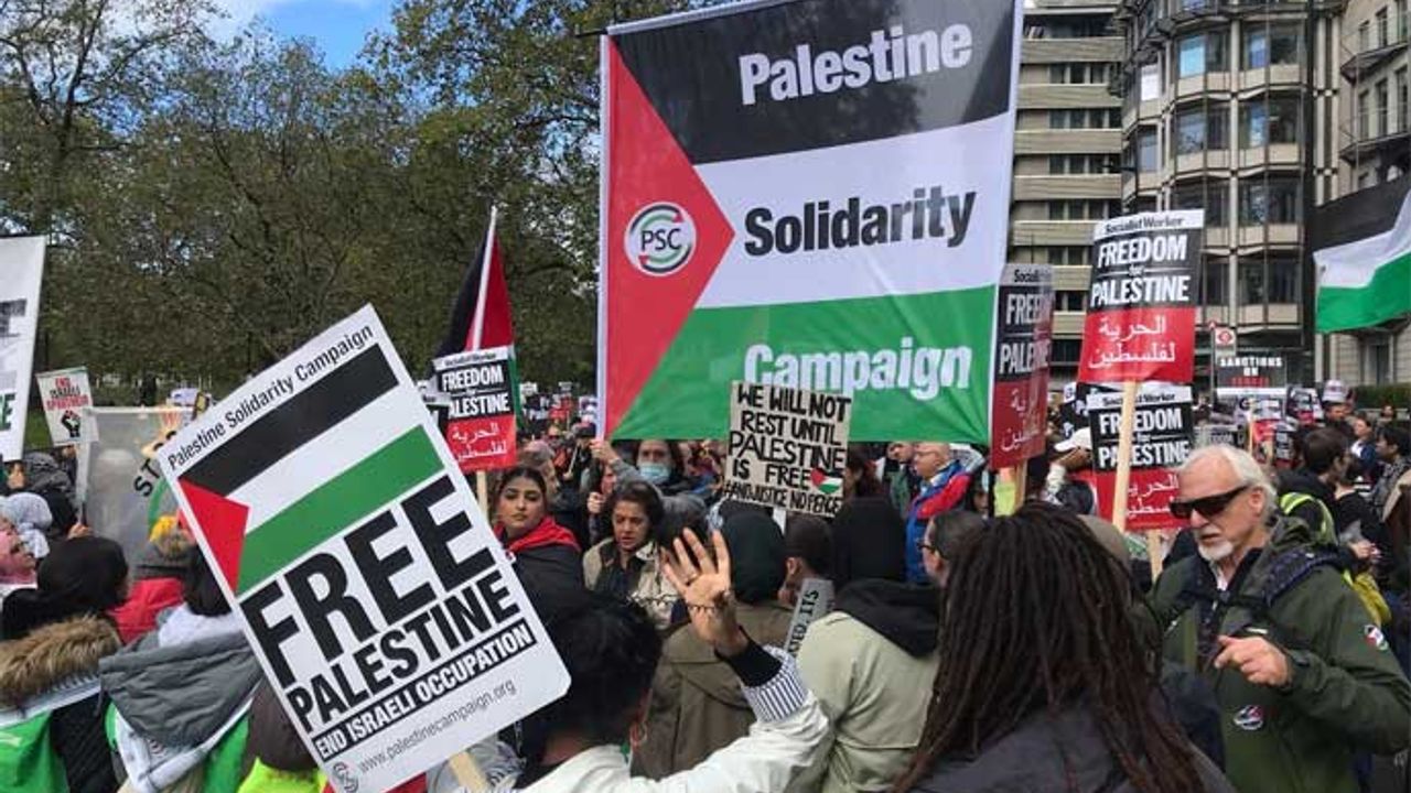 Muhalefetteki İşçi Partisinin de İsrail’e destek açıklamasından sonra, gösterilere katılan kitle İşçi Partisini de protesto eden pankartlar açtı. İşçi Partisi lideri Kear Starmer’in İsrail’i destek açıklamasından sonra yüzlerde parti üyesi ve belediye encümeni partiden istifa etmişti.