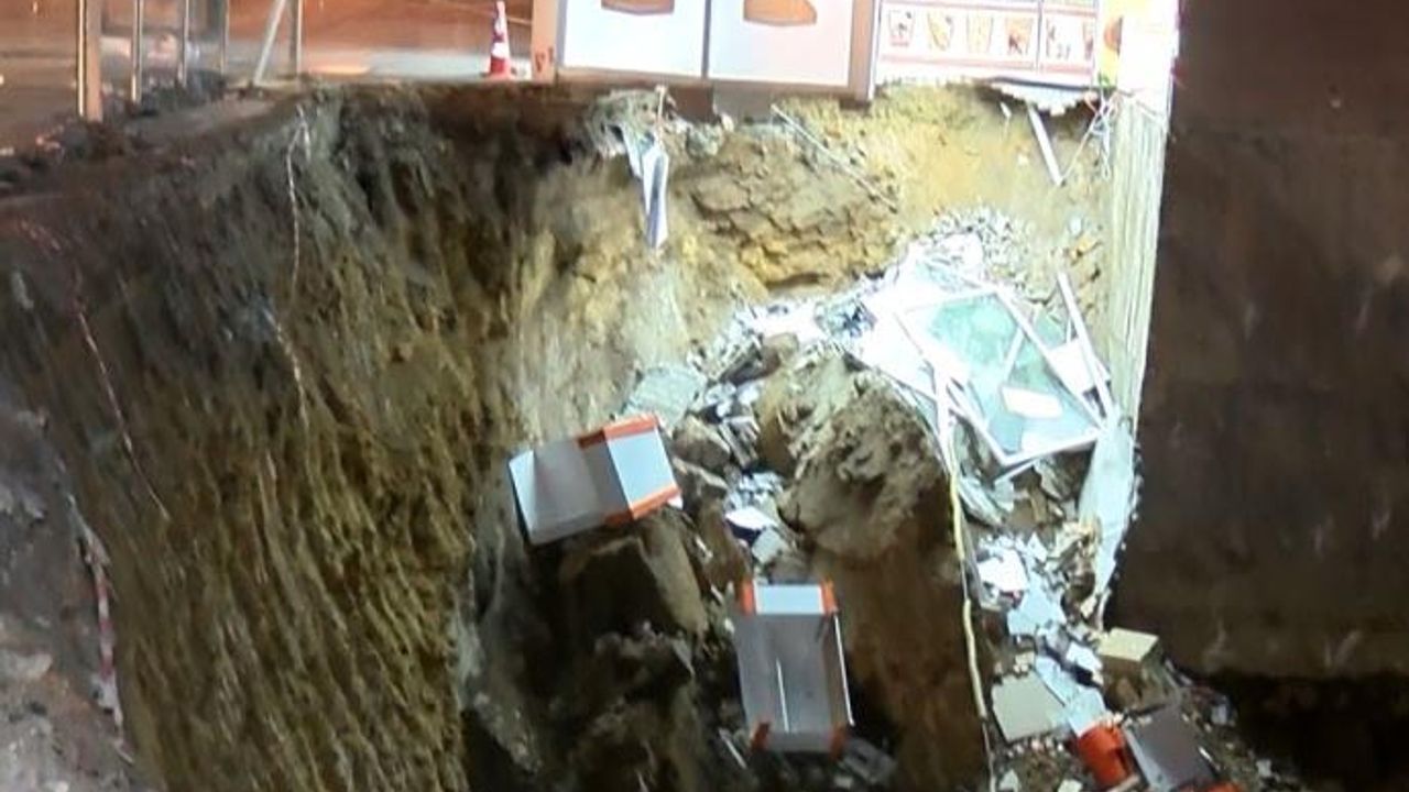 Ankara'da kuruyemiş dükkanın yanında bulunan boş arazide inşaat çalışmasının yapıldığı sırada, dükkanın çıkma kısmındaki toprak kaydı. Toprağın kaymasıyla birlikte dükkanın bir kısmı çöktü.