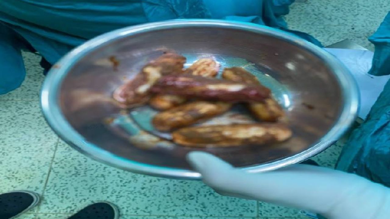 Artvin Devlet Hastanesi’nde tomografisi çekilen şüphelinin bağırsaklarında 10 paket halinde uyuşturucu madde taşıdığı belirlendi. Şüphelinin hayati tehlike oluşturabilecek şekilde sakladığı paketler, cerrahi müdahaleyle çıkarıldı. İncelemede paketlerin içinde toplam 350 gram metamfetamin olduğu tespit edildi.