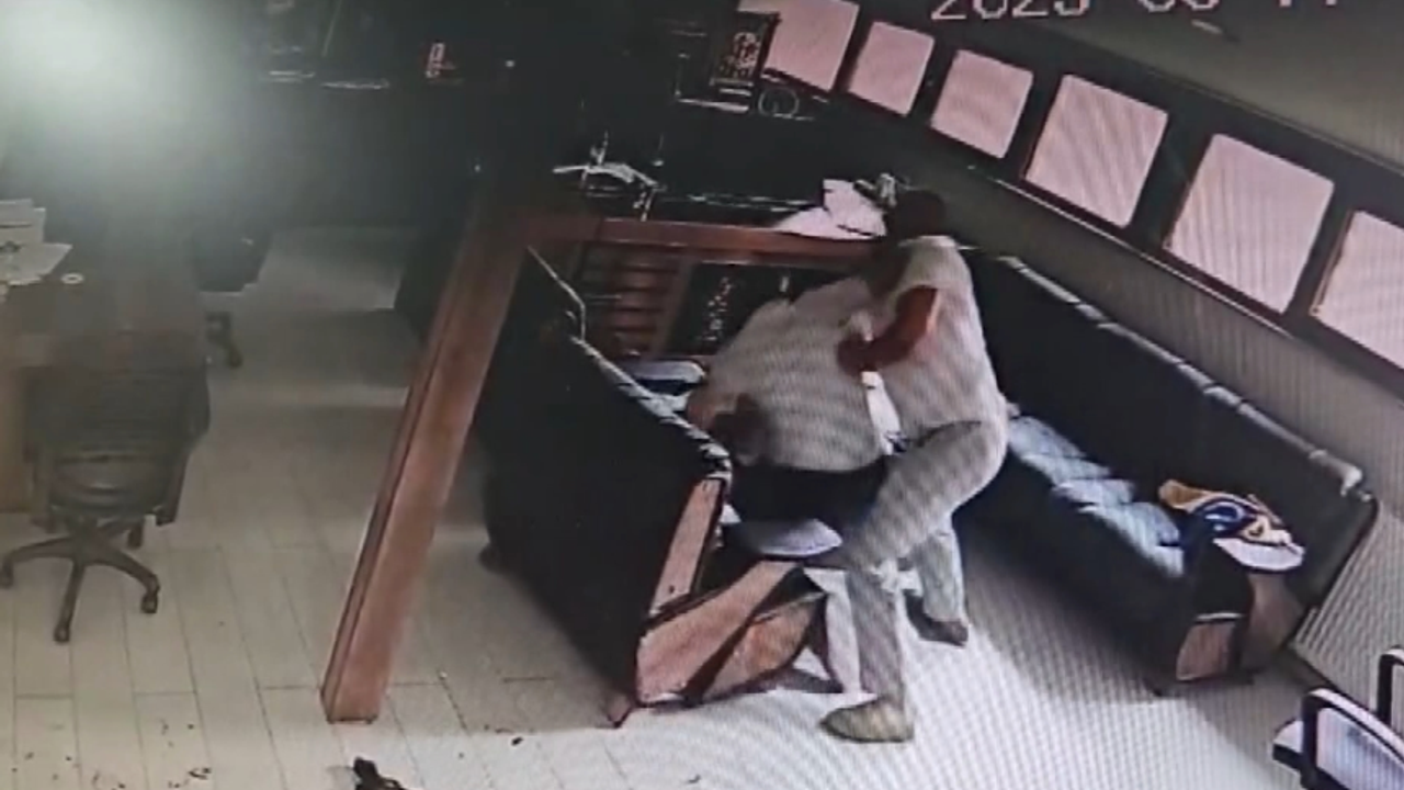 Olay anı iş yerinin güvenlik kamerasına yansıdı.