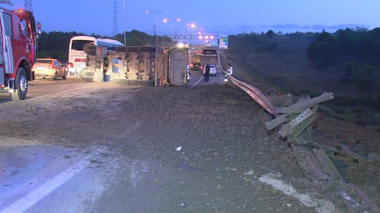 Eyüpsultan’da hafriyat kamyonunun devrilmesi sonucu yol İstanbul Havalimanı istikametinde trafiğe tamamen kapandı.