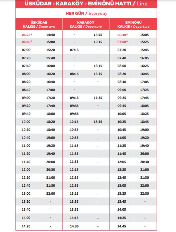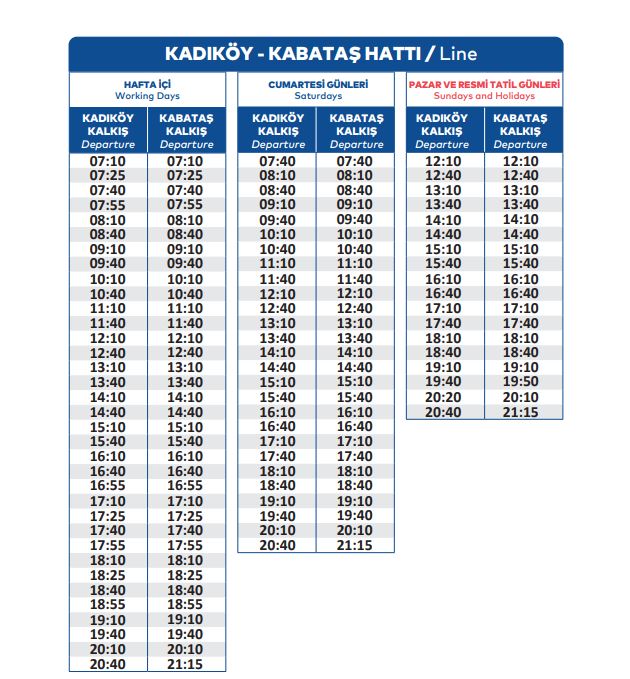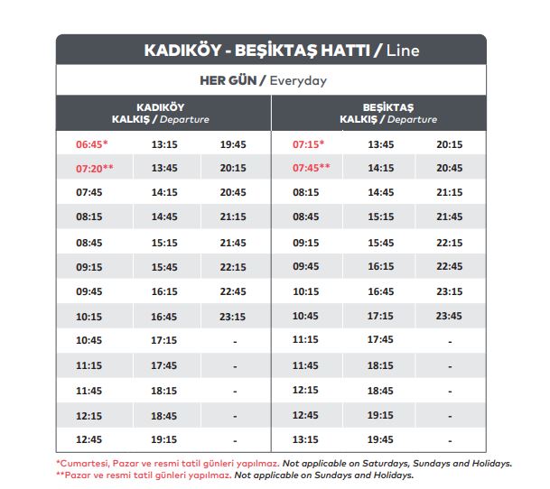 Geçtiğimiz yılın kış tarifesinden farklı olarak Sarıyer-Beykoz ve Rumeli Kavağı-Eminönü hatlarındaki sefer saatlerinde değişiklikler bulunuyor. Yaz tarifesinde de yer alan Küçüksu-Beşiktaş-Kabataş hattınaysa Kanlıca'ya uğraması ekleniyor.