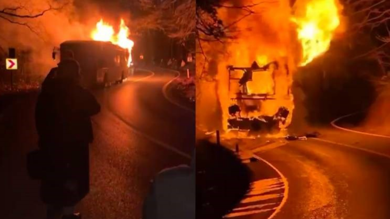 İstanbul Sarıyer'de seyir halindeki İETT otobüsünün motor kısmında yangın çıktı. Yangını fark eden otobüs şoförü, otobüsü yolun kenarına çekerek yolcuları hızla tahliye etti. Kısa sürede büyüyen alevler tüm otobüsü sararken, otobüste art arda patlamalar meydana geldi. Panikle uzaklaşan yolcuların yara almadan kurtulduğu yangın, itfaiye ekiplerinin müdahalesiyle kontrol altına alındı. Ancak demir yığınına dönen otobüs kullanılmaz hale geldi.
