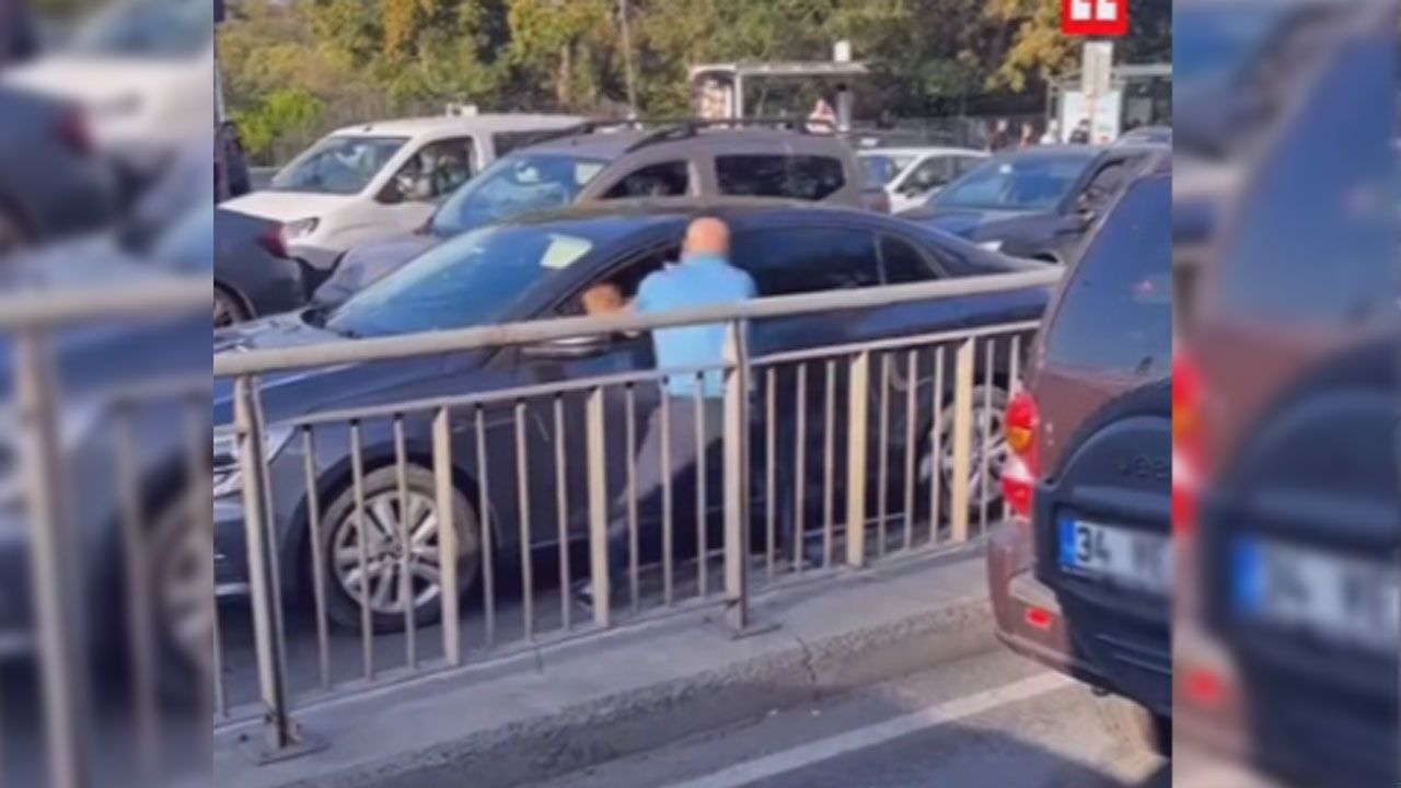 İstanbul'da trafikte otobüs şoförü ile otomobil sürücüsü arasında bilinmeyen bir nedenler kavga çıktı.