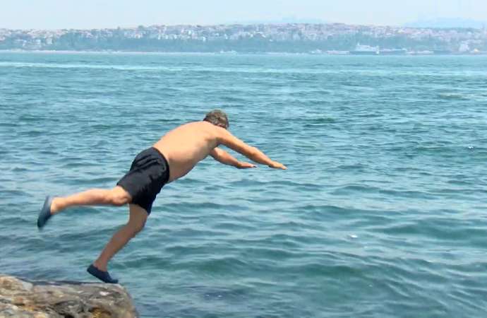 İstanbul'da son günlerde sıcaklıkların 30 derecenin üstüne çıkmasıyla bunalan vatandaşlar soluğu Sarayburnu Sahili'nde aldı. İstanbul Boğazı'nda denize girmek isteyen vatandaşların ilk tercihlerinden biri olan Sarayburnu'nda kimi vatandaş boğazın serin sularına atladı kimi ise kayalıklara uzanarak güneşlendi.