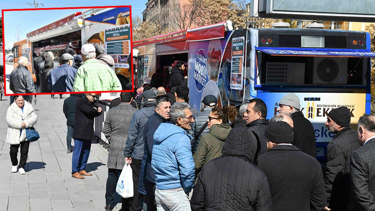 'AKP Yüzyılı'nda beslenmek de lüks oldu. Gıda sektöründe yaşanan fiyat artışları nedeniyle Türkiye'nin dört bir yanında ucuz ürün kuyrukları oluşmaya devam ediyor. Ankara'da da Başkent Market ve Mobil Market aracıyla Ramazan ayı sonuna kadar sürecek olan uygun fiyatlı et satışı uygulamasının ilk gününde vatandaşlar sıraya girdi.