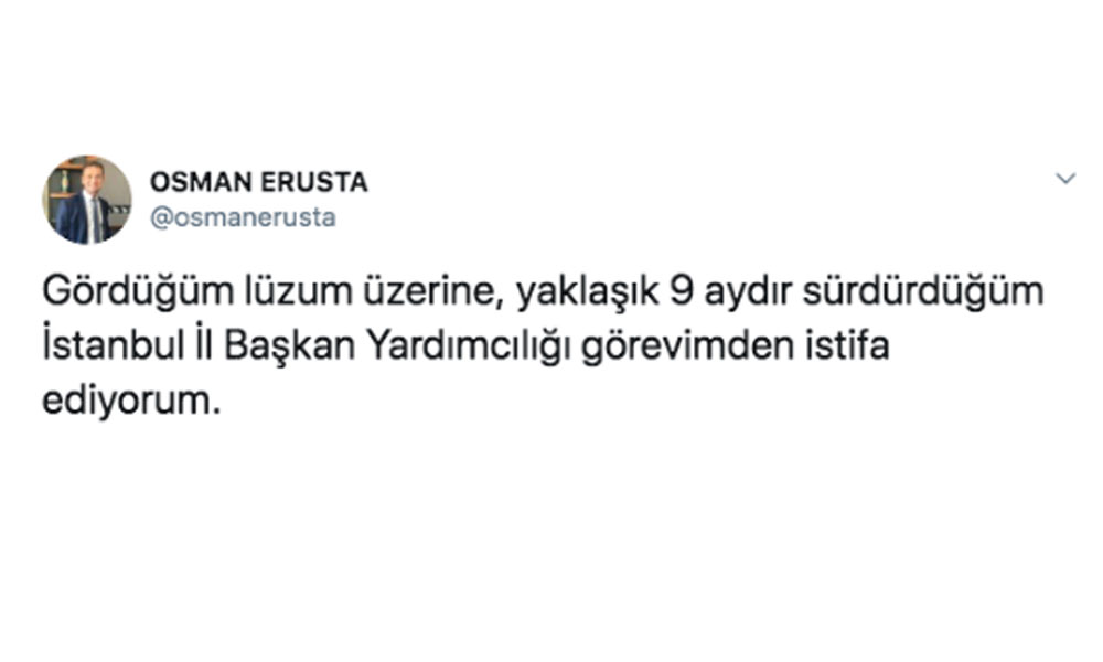 İyi Parti İstanbul İl Başkan Yardımcısı Avukat Osman Erusta istifa etti.
