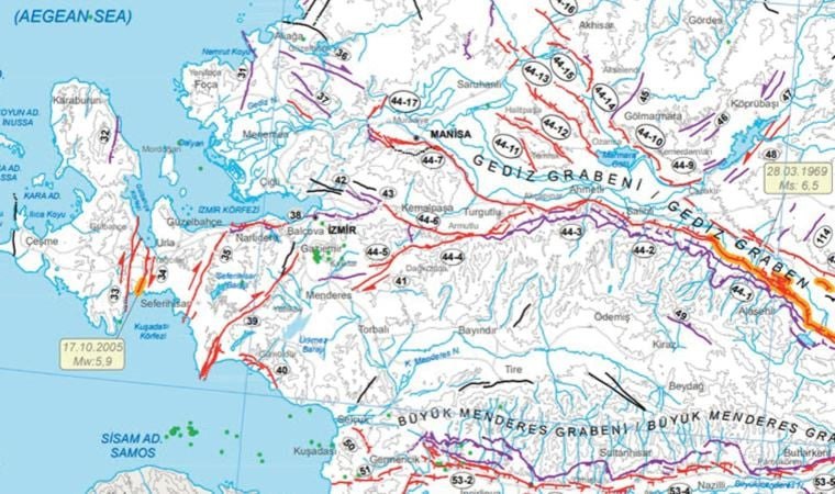 Diri fay hattı haritası, Maden Tetkik Arama Genel Müdürlüğü tarafından güncellendi. Birinci derecede riskli olan iller İzmir, Balıkesir, Manisa, Muğla, Aydın, Denizli, Uşak ve Çanakkale olarak belirlendi. Haritada fayların kent merkezinden ve yerleşim yerlerinin altından geçtiği görülüyor