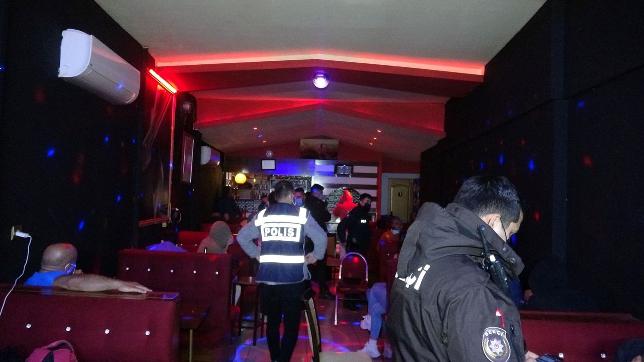 İzmir İl Emniyet Müdürlüğü Asayiş Şube Müdürlüğü Ahlak Büro Amirliği ekipleri, dün gece saatlerinde koronavirüs tedbirleri kapsamında kapalı olması gereken eğlence mekanının açık olduğunu ve içeride müşterilerin bulunduğunu tespit etti. Mekana baskın yapan polis ekipleri, hem sokağa çıkma kısıtlamasını ihlal eden hem de sosyal mesafe kurallarına uymayan 22 kişiye işlem yaptı. 22 kişiye sokağa çıkma kısıtlamasını ihlal etmek, sosyal mesafe kuralına uymamak 69 bin 600 lira, mekanda sigara içen 2 kişiye ise 300 lira para cezası kesildi.