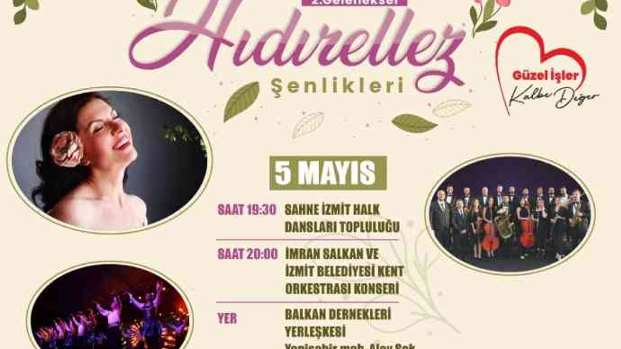 İzmit Belediyesi Kültür ve Sosyal İşler Müdürlüğü ile Balkan Dernekleri ortaklığıyla baharın müjdecisi ve doğanın uyanışının temsili olan “2. Geleneksel Hıdırellez Şenlikleri” bu yıl da büyük bir coşku ile kutlanacak. “2. Geleneksel Hıdırellez Şenlikleri”, 5 Mayıs Cuma günü saat 18.00’de Yenişehir Mahallesi Fahri Akbaş Parkı’nda İzmit Belediyesi Balkan Dernekleri Yerleşkesi’nde gerçekleşecek.