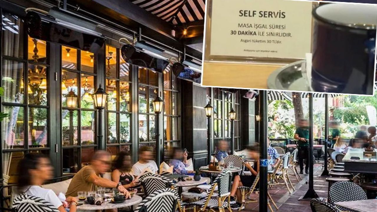 Bazı geniş masalar içinse belirli bir üst sınır belirleniyor. Örneğin 220 lira altı sipariş veren müşterilerin masa işgal edemeyeceği belirtiliyor.